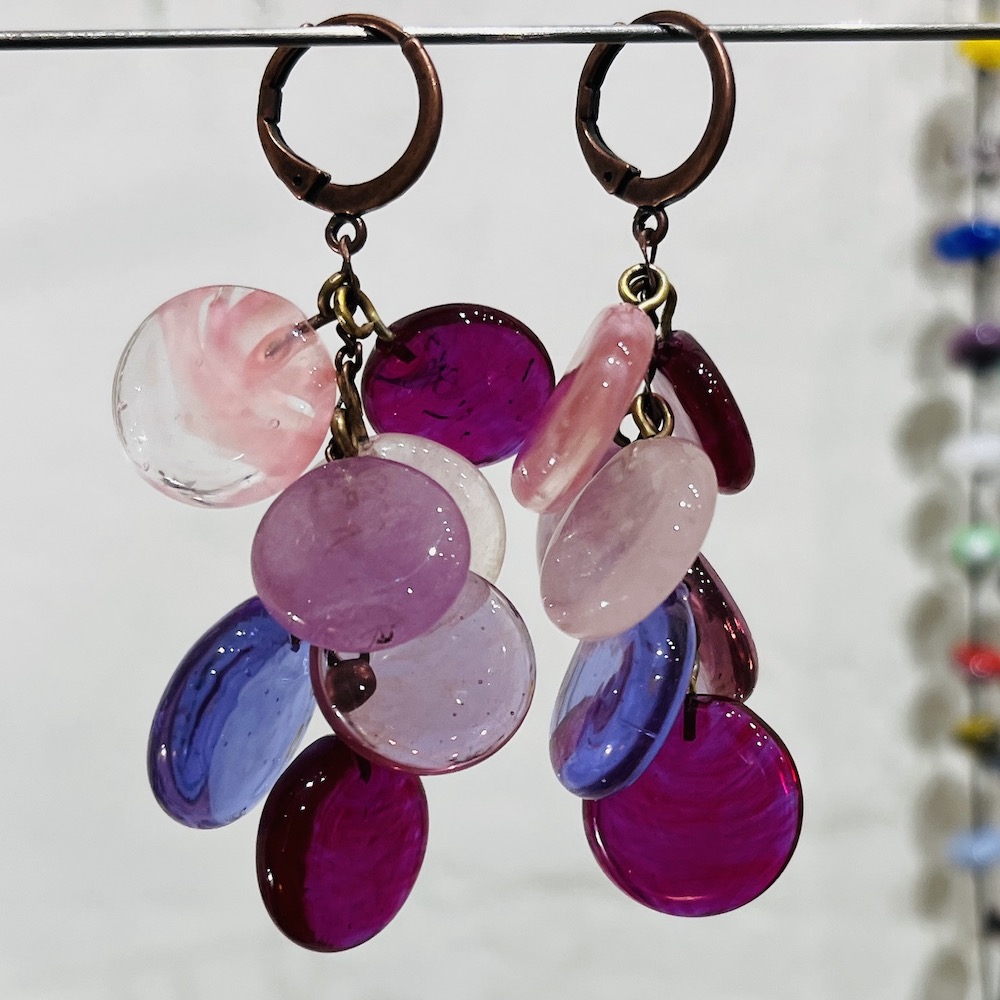 Les pièces en verre sont assemblées sur une chaine couleur bronze antique.
