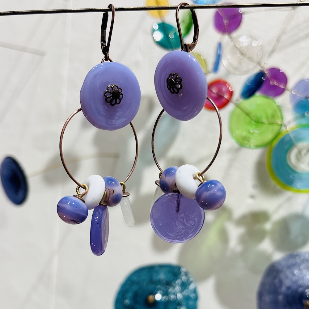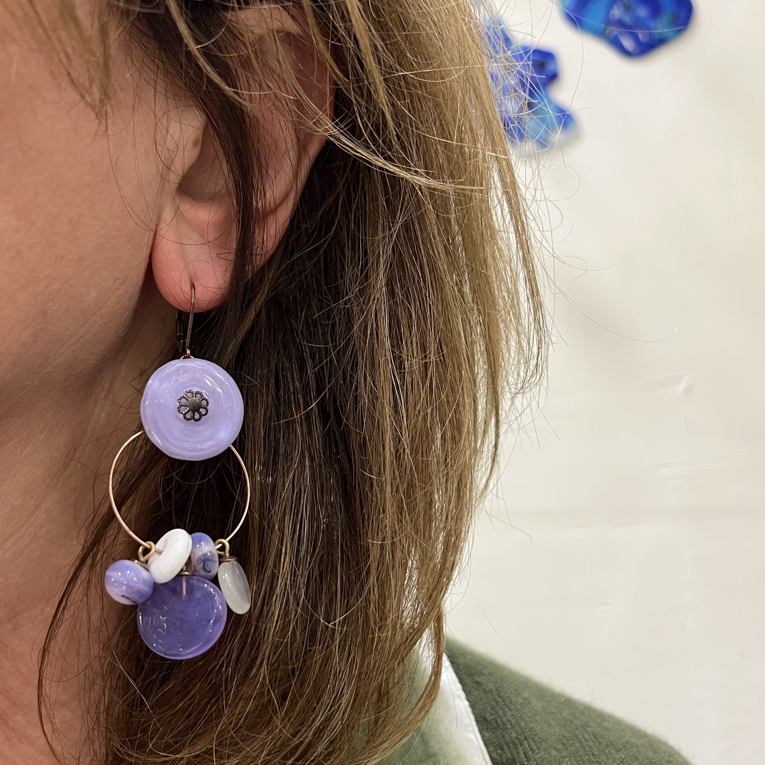 Différentes pièces en verre pour cette jolie paire de boucles d’oreilles