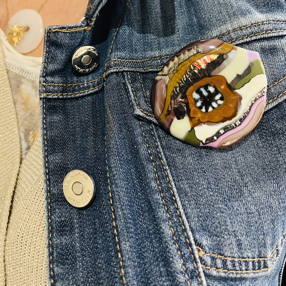 Petite tableau à accrocher sur le revers d’une veste, d’un manteau pour habiller le quotidien d’une touche artistique.