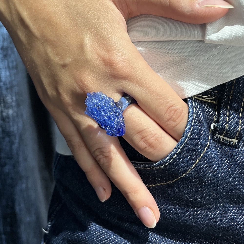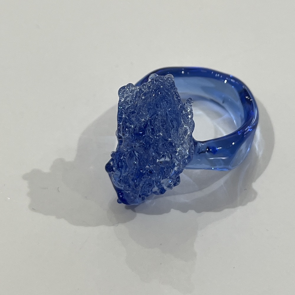 Bague en verre bleu réalisée au chalumeau en verre borosilicate (verre très résistant aux chocs) et recuites afin d’assurer une solidité optimale.