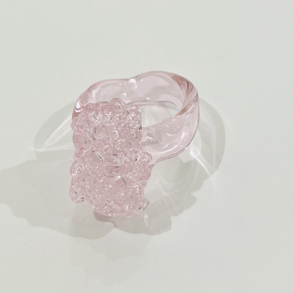 Bague en verre rose réalisée au chalumeau en verre borosilicate (verre très résistant aux chocs) et recuites afin d’assurer une solidité optimale.