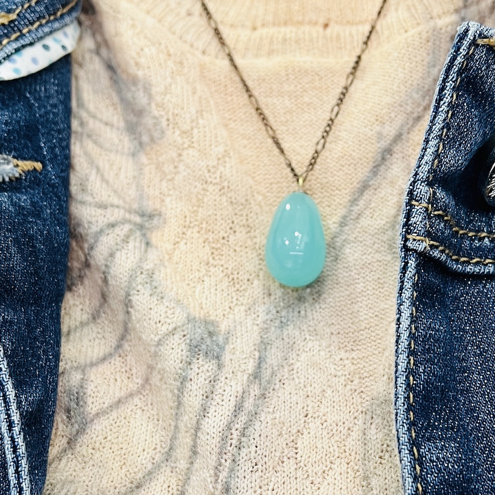 Collier goutte de verre unie sur chaîne en cuivre antique avec un joli fermoir aimanté (pratique et esthétique).