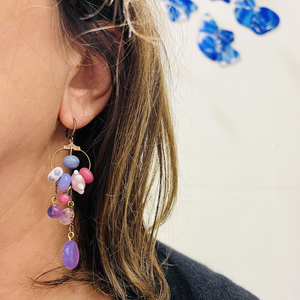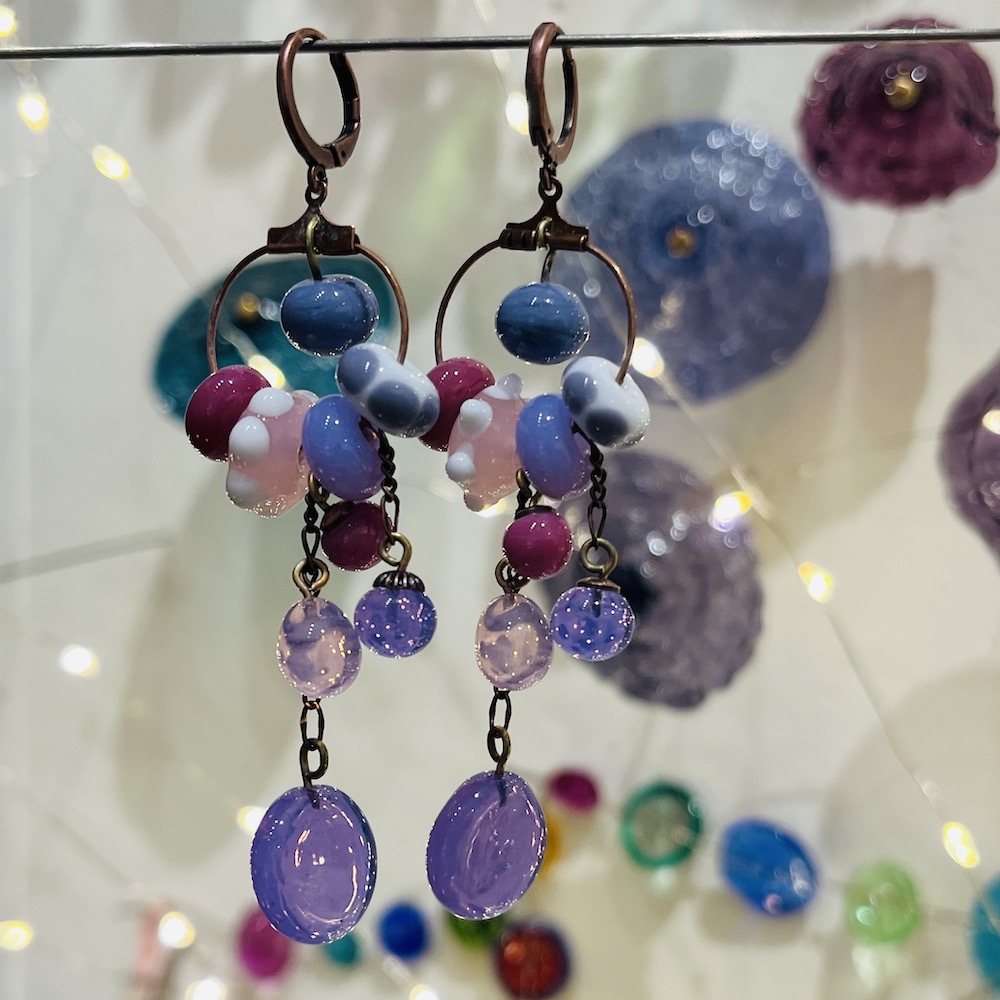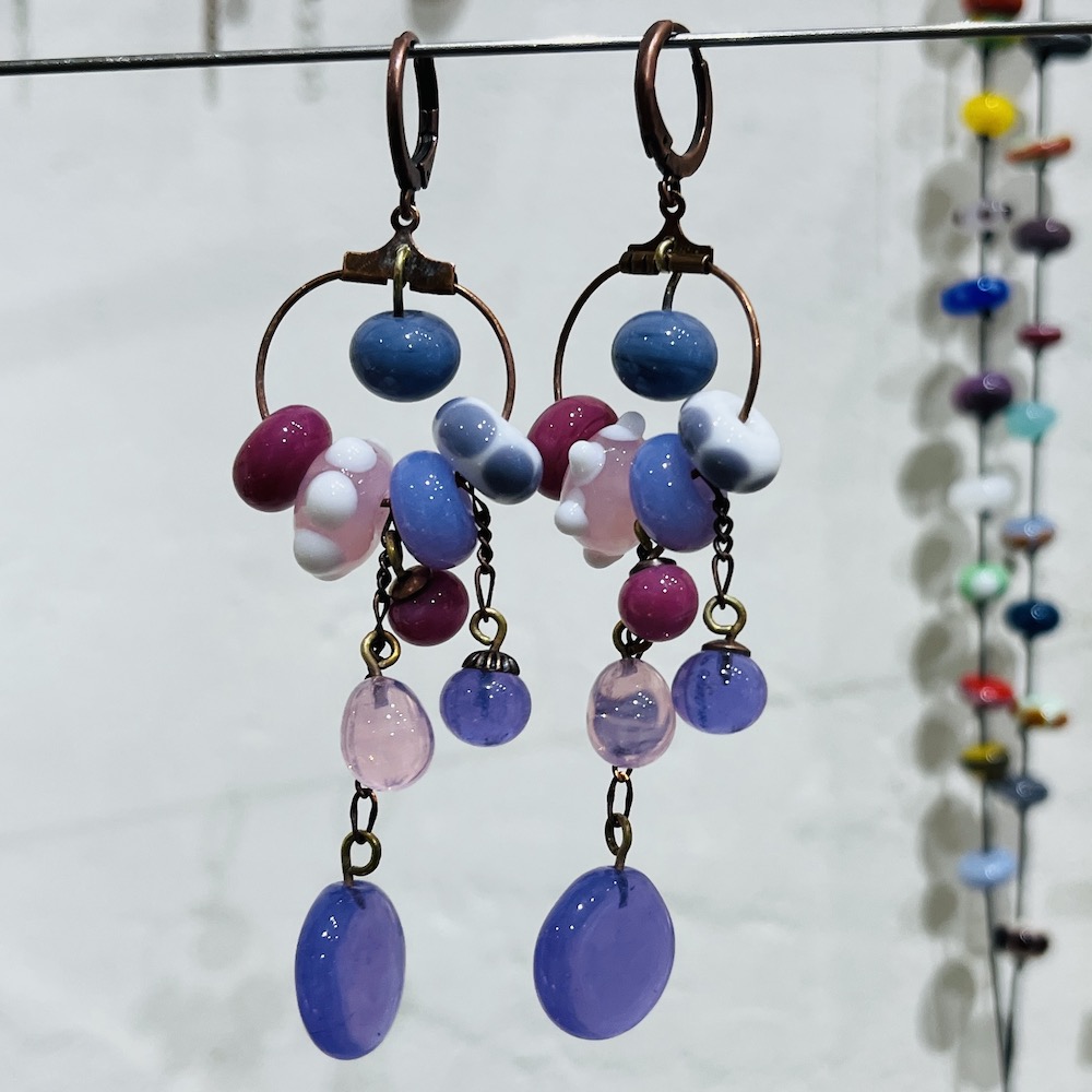 Les pièces en verre sont assemblées sur une chaine couleur bronze antique.