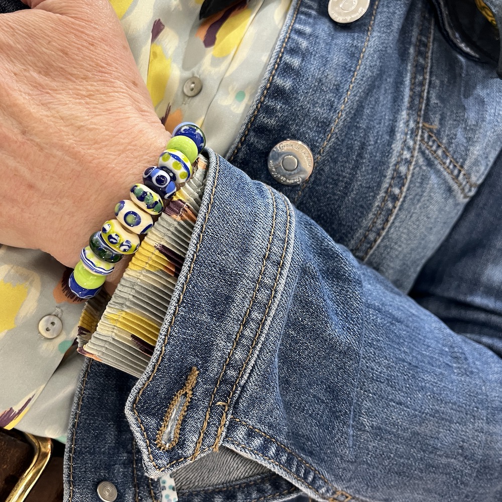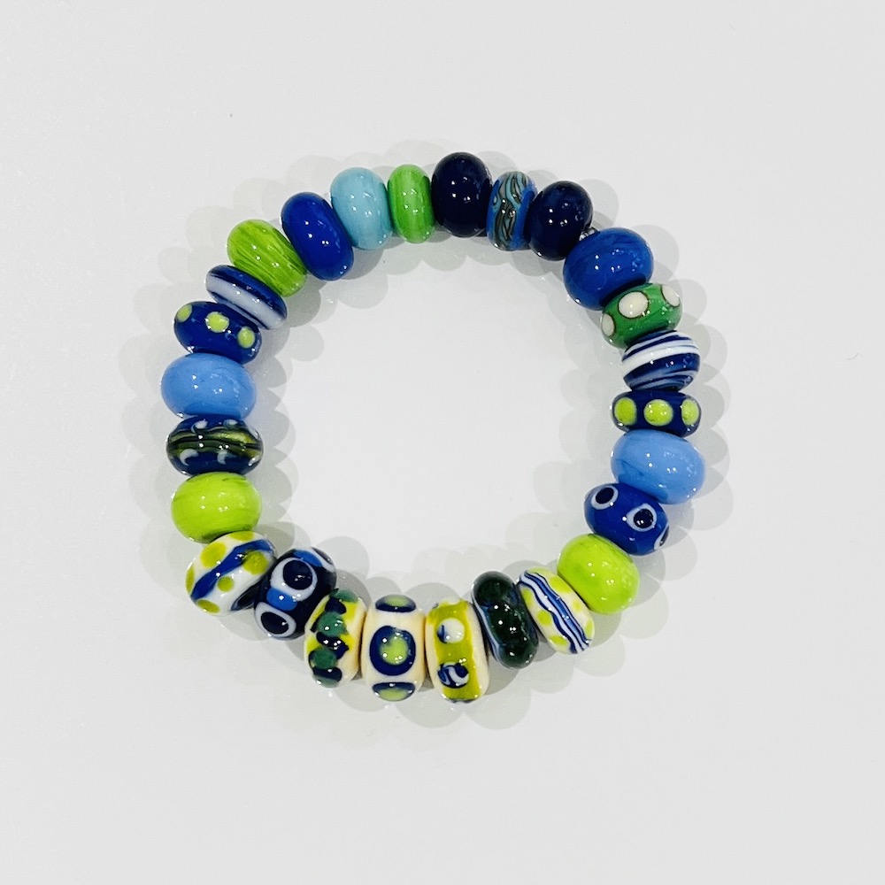 Bracelet composé de perles en verre dans une harmonie de bleu/vert