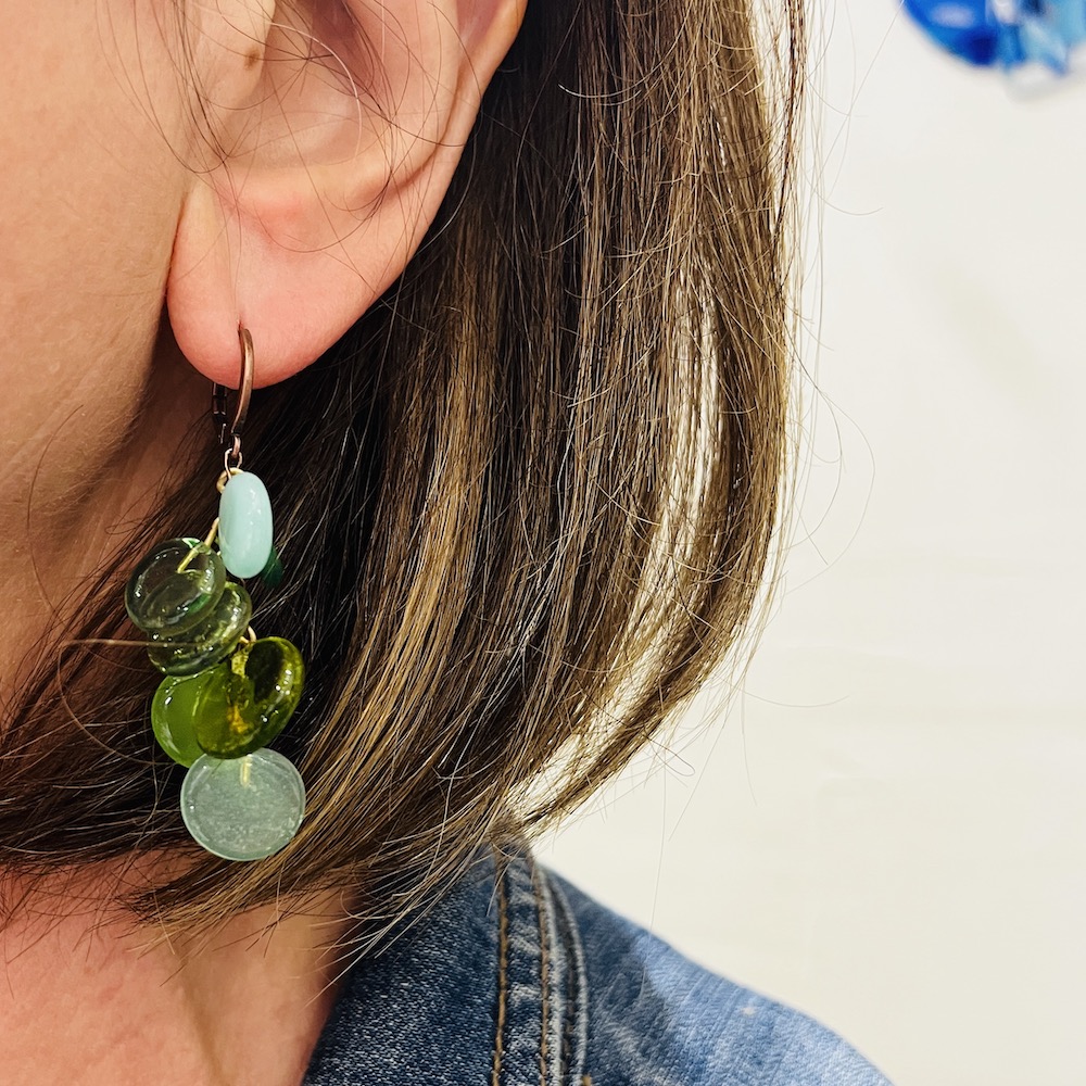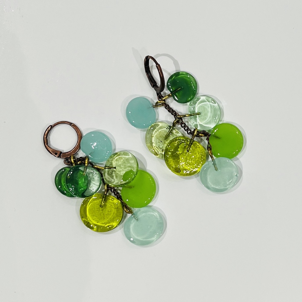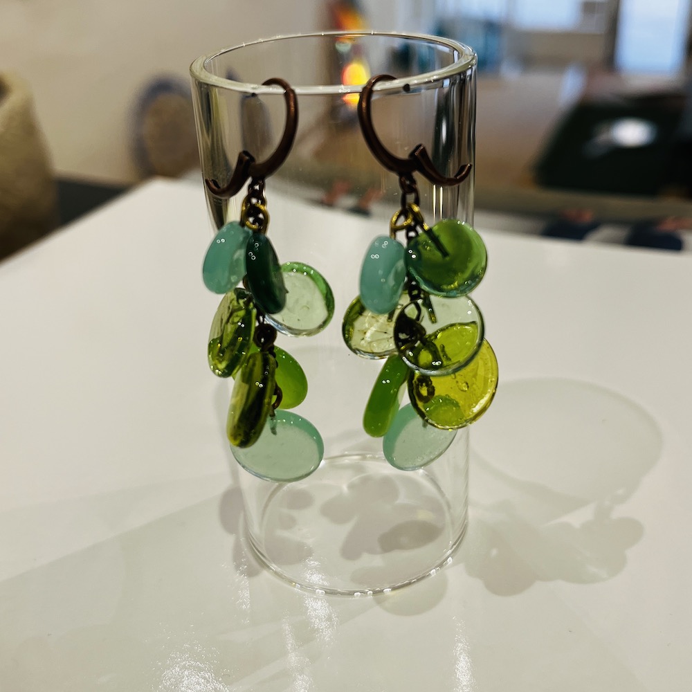 Les pièces en verre sont assemblées sur une chaine couleur bronze antique.