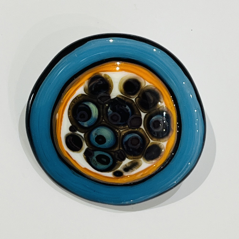 Petite tableau à accrocher sur le revers d’une veste, d’un manteau pour habiller le quotidien d’une touche artistique.